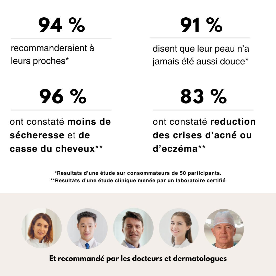 Amélioration de l’hydratation de la peau et des cheveux, et diminution de l'acné et eczéma après seulement 30 jours d’utilisation